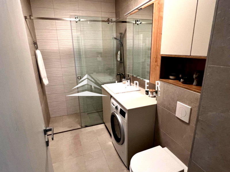 Compartimentarea este eficientă și modernă, incluzând living open space cu bucătărie, hol și dormitor spațios, fiind gândită pentru a oferi confort și funcționalitate maximă. Apartamentul se vinde ultrafinisat, cu materiale de calitate superioară, parchet, gresie, faianță, ușă metalică, geamuri termopan, centrală termică proprie, încălzire în pardoseală și aer condiționat. Locuința este complet mobilată și utilată modern, cu mobilier atent ales și finisaje contemporane, pregătită pentru mutare imediată fără investiții suplimentare.