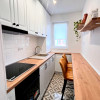 Apartamentul este compartimentat in hol, bucatarie separata, 2 camere, 1 baie plus un balcon cu orientare vestică, ceea ce oferă lumină naturală și un cadru plăcut în a doua parte a zilei. Finisajele sunt moderne, recent renovate, cu parchet, gresie, faianță, geamuri termopan, ușă metalică la intrare și centrală termică proprie. Atmosfera este caldă și primitoare, cu o paletă cromatică plăcută și mobilier personalizat, adaptat spațiului pentru confort și funcționalitate.