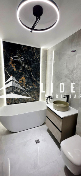 Finisajele interioare sunt de actualitate, fiind realizate cu materiale atent selecționate pentru a asigura un standard ridicat de confort. Apartamentul dispune de parchet de calitate, gresie și faianță modernă, ferestre cu geam termopan, ușă metalică la intrare și sistem de încălzire propriu cu centrală termică. Locuința se vinde complet mobilată și utilată, beneficiind de mobilier personalizat, realizat la comandă pentru a utiliza eficient fiecare colț al apartamentului.