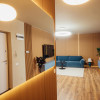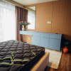 Interiorul se remarca prin finisaje premium si design contemporan, cu mobila personalizata din MDF, culori calde si neutre care creeaza o atmosfera primitoare. Apartamentul se vinde complet mobilat si utilat la cheie, cu electrocasnice moderne, iluminat LED, aer conditionat, TV smart, incalzire in pardoseala si geamuri cu 4 camere, oferind un confort sporit si eficienta energetica.