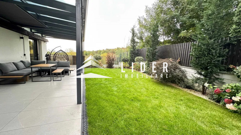 Apartamentul este complet finisat cu materiale de calitate superioară, se vinde mobilat și utilat, fiind pregătit pentru mutare imediată. Dispune de încălzire în pardoseală cu control individual pe fiecare cameră, sistem de alarmă, supraveghere video și sistem automatizat de irigații pentru grădină.
