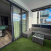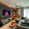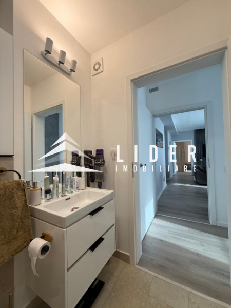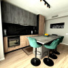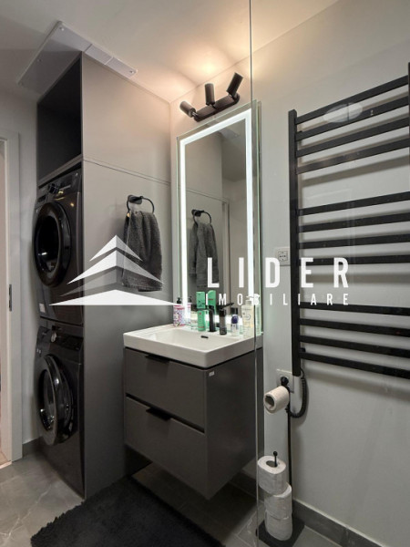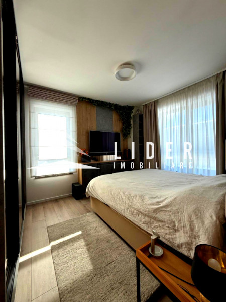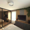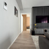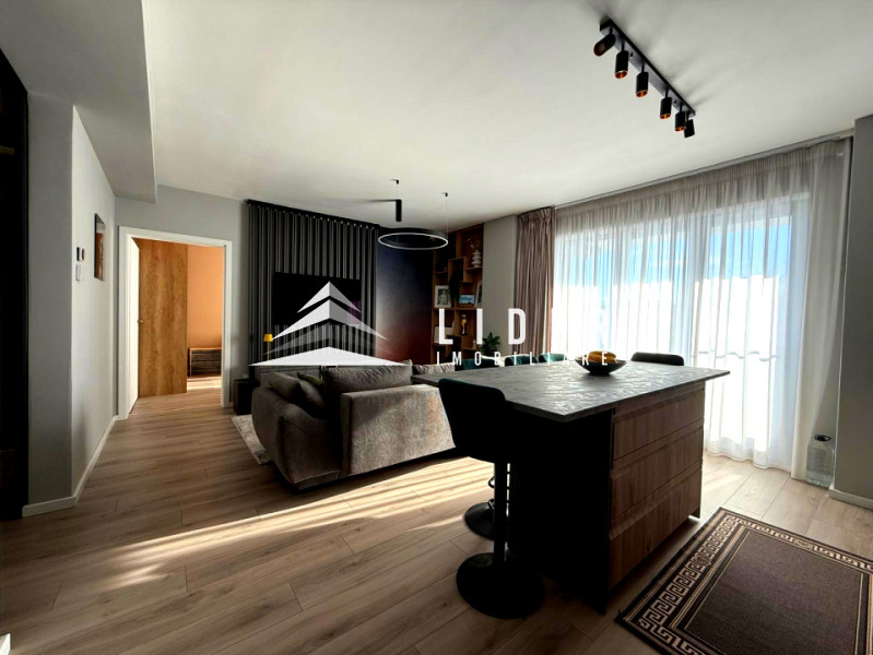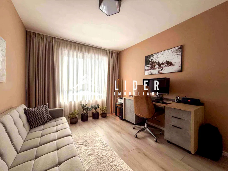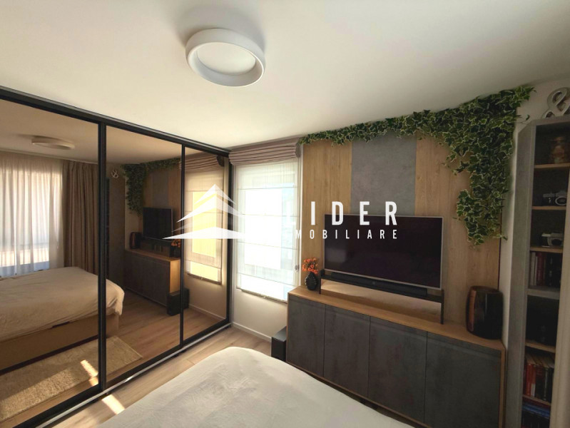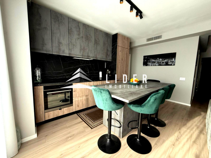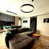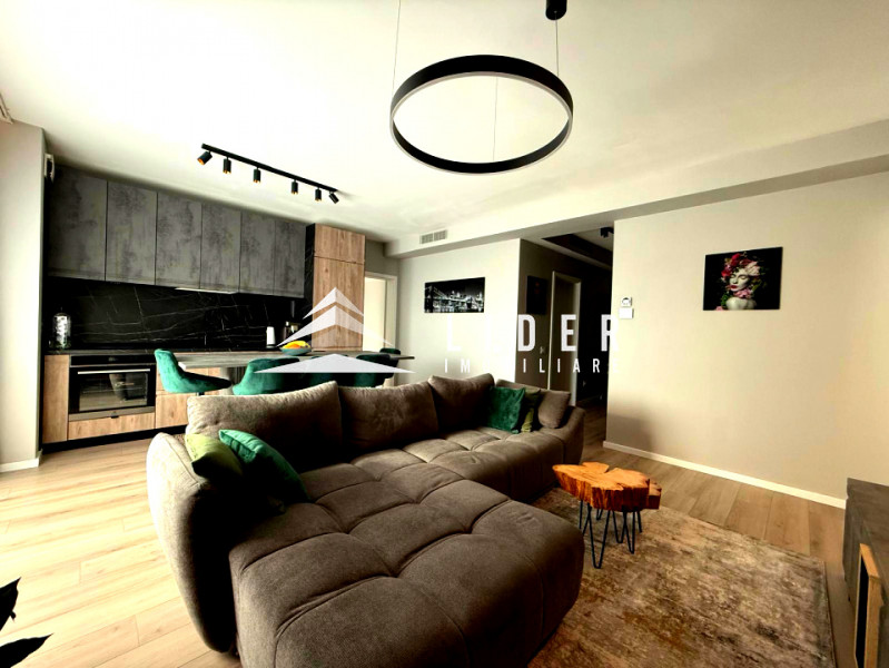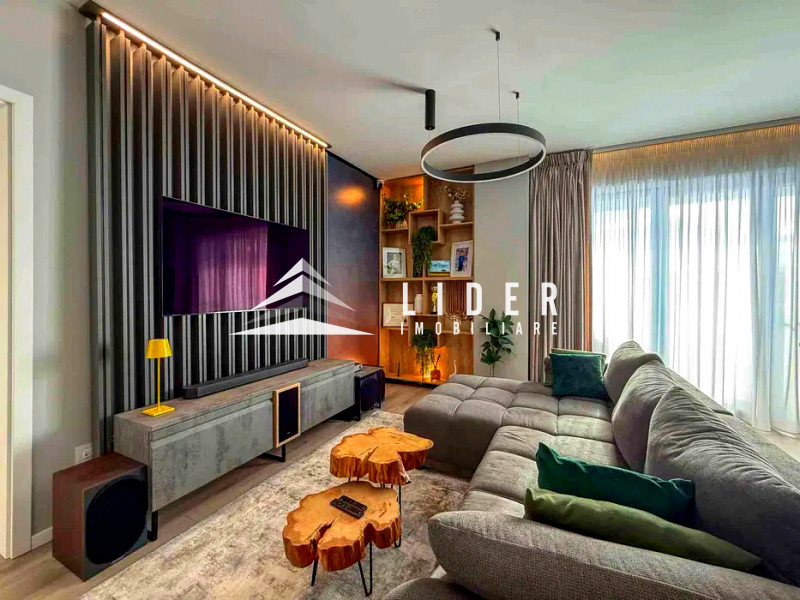 Apartamentul se remarcă prin finisaje de calitate superioară și dotări moderne, printre care încălzire în pardoseală, parchet fonoizolant, gresie de import din Italia, obiecte sanitare contemporane, uși interioare noi și ferestre PVC cu geam tripan. Zona de zi este organizată în regim open space, cu bucătărie complet echipată cu combină frigorifică, plită pe inducție, cuptor electric, hotă și mașină de spălat vase. Locuința dispune de două băi, aer condiționat integrat, mașină de spălat rufe, uscător de haine și calorifere electrice în băi. Mobilierul este ales din game premium, oferind confort și un design elegant.