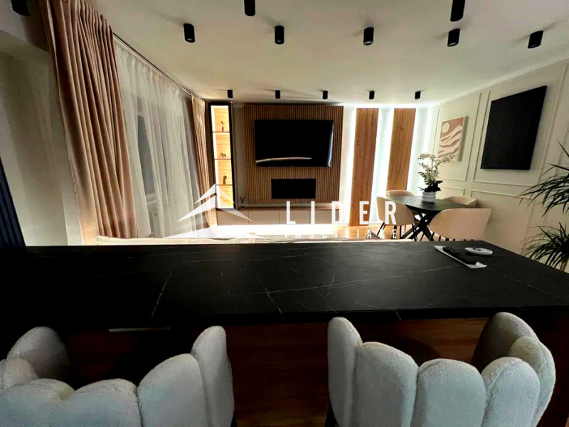 Atmosfera unică a acestui apartament este susținută de dotările tehnologice și de elementele de confort superior. Livingul devine sanctuar al relaxării focului bioșemineului elegant, care oferă farmecul unui real fără inconveniente întreținerii, și sistemul de divertisment susținut al unui Smart TV LED cu diagonala de 164 cm. Întreaga locuință beneficiază de un sistem complex de iluminat LED integrat, care nu doar reduce consumul de energie, ci subliniază și liniile arhitecturale moderne ale amenajării. Proprietatea se predă exact conform imaginilor de prezentare și beneficiază de garanție pentru toate lucrările efectuate.