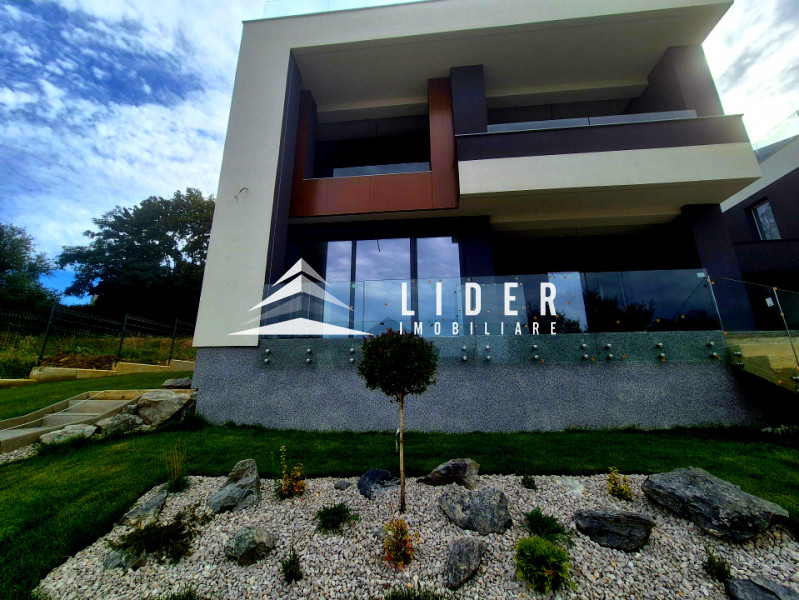 Construcția a fost realizată cu materiale premium: pompa de caldura de 22 KW, încălzire în pardoseală, geamuri termopan trioane , fațadă cu Alucobond, panouri fotovoltaice de 5,5 KW, balcoane cu sticlă securizată, iluminare decorativă cu bandă LED, usa antiefractie, iar curtea este complet amenajată cu gazon și vegetație ornamentală avand sistem de irigare automatizat